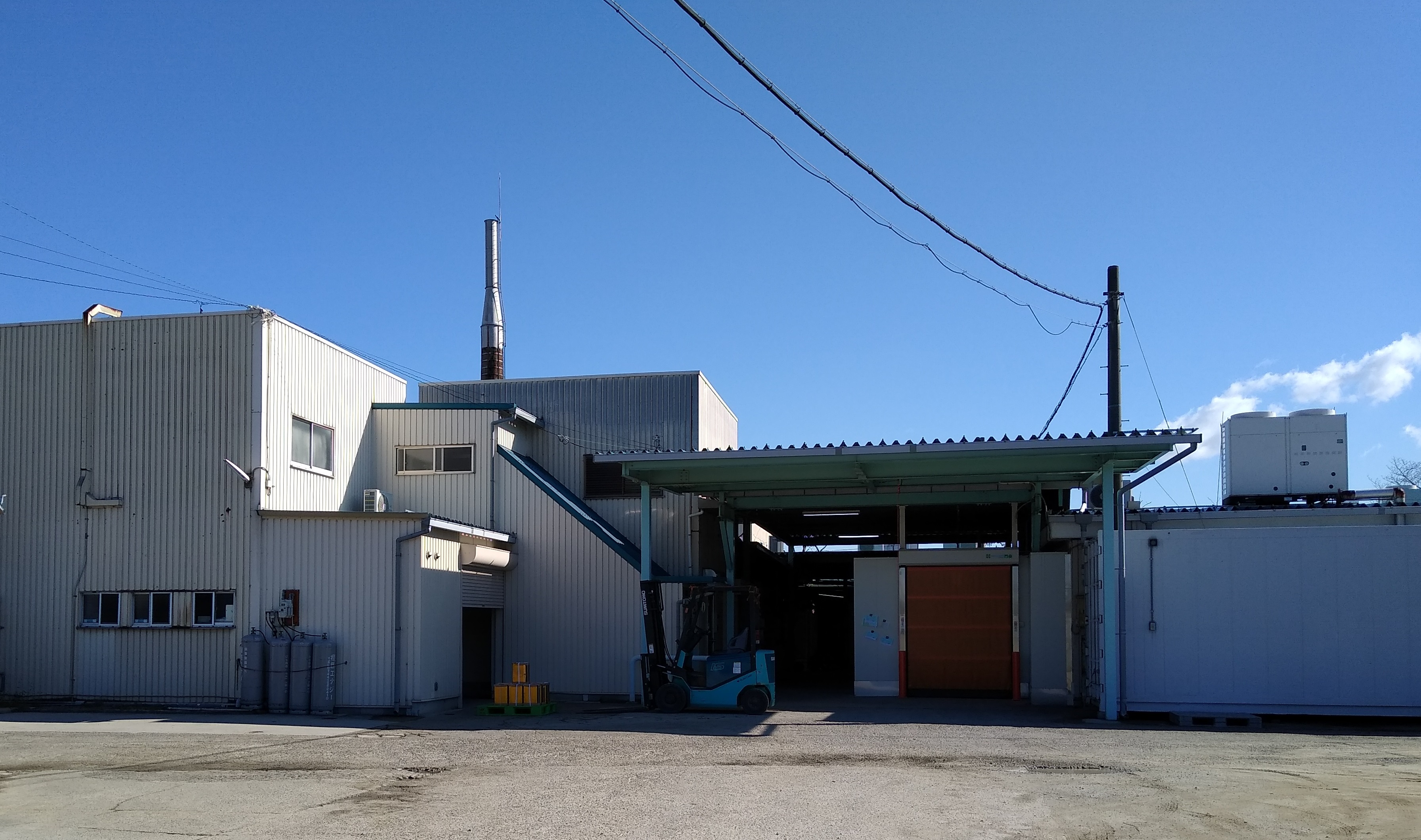 ロイヤル染工(他社)と同じ敷地内で、向かって右側の建屋が弊社です。